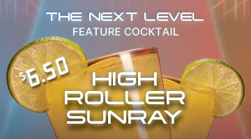 The High Roller Sunray – a bubbly, citrus delight to uplift your night! Sip on sunshine as you enter The Next Level.